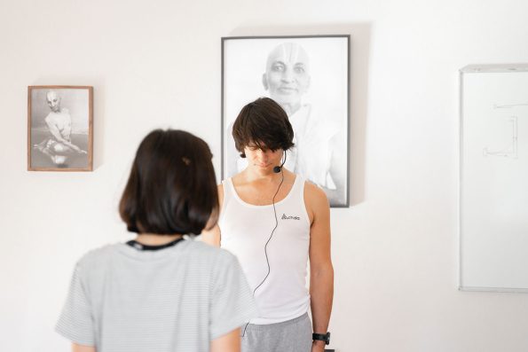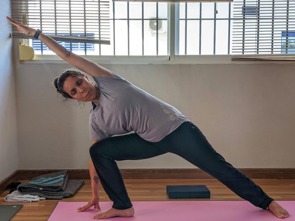 Comencé en Achala desde sus inicios, enero 2018, con «Yoga lyengar», en el cual, se usaban bloques, mantas, correas, sillas …. ayudaban a realizar las posturas, puesto que se hacía hincapié en la alineación, precisión de la postura y mantenerlas por tiempo y así aprovecharlas al máximo. Se debía prestar atención …